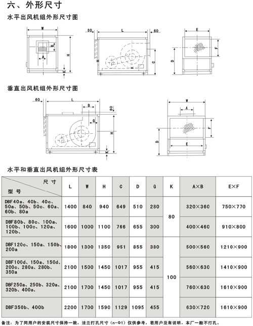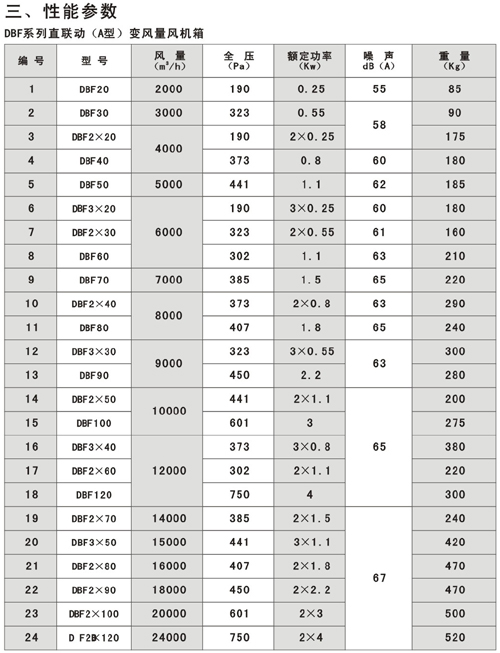 一、概述 DBF系列低噪聲變風(fēng)量風(fēng)機(jī)箱,采用先進(jìn)的低噪聲雙吸式離心風(fēng)機(jī),并配置減振器,箱體內(nèi)壁(保溫)吸聲面板,進(jìn)風(fēng)口設(shè)置過(guò)濾網(wǎng)。具有噪聲低,振動(dòng)小,體積小,重量輕,風(fēng)管連接靈活,現(xiàn)場(chǎng)拆裝方便的特點(diǎn),具有消音和空氣過(guò)濾作用。配備電控箱后,可實(shí)現(xiàn)調(diào)速變風(fēng)量,并可遠(yuǎn)程控制。DBF系列低噪聲變風(fēng)量風(fēng)機(jī)箱可用作通風(fēng)系統(tǒng)串聯(lián)加壓;或直接作為排氣風(fēng)機(jī);以及作混風(fēng)箱兼動(dòng)力源之用。要求通過(guò)風(fēng)機(jī)箱的氣休無(wú)腐蝕性和自然性,不含粘性物質(zhì)。DF系列低噪聲變風(fēng)量風(fēng)機(jī)箱已在空調(diào)通風(fēng)工程廣泛使用。 DSF系列(HTFC系列)防排煙風(fēng)機(jī)箱,HTFC系列消防專用離心式風(fēng)機(jī)箱的派生產(chǎn)品,它采取的風(fēng)機(jī),設(shè)備,部件,材料均按高溫排煙風(fēng)機(jī)箱配置,DSF(HTFC系列)防排煙風(fēng)機(jī)箱除了能用作DBF系列低噪聲變風(fēng)量風(fēng)機(jī)箱外,還能排放280攝氏度以上的高溫?zé)煔狻?