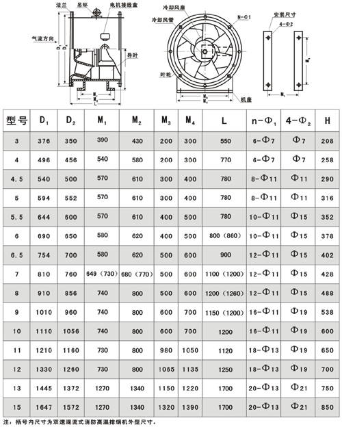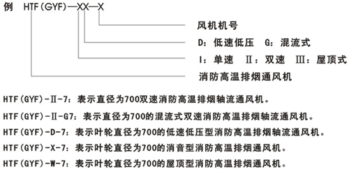 二.HTF(GYF)系列消防高溫排煙軸流通風(fēng)機(jī)性能的選擇和型號(hào)說(shuō)明