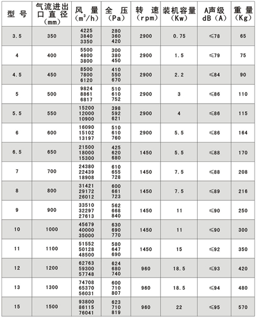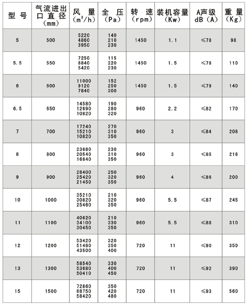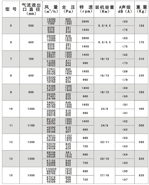 (6)安裝方便,占地較離心風(fēng)機(jī)少:該風(fēng)機(jī)基本形式為軸流式風(fēng)機(jī)或混流式風(fēng)機(jī),可直接與風(fēng)管連接或墻壁安裝,安裝形式可采用垂直或水平式。很大程度上節(jié)省了占地面積。