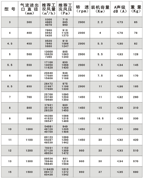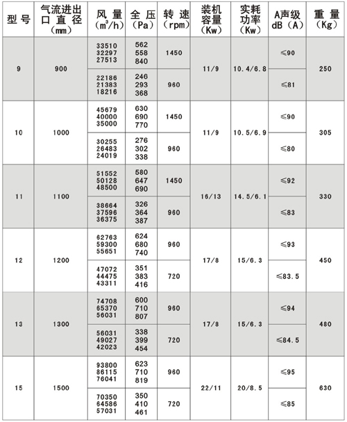 十一.HTF(GYF)-IIG型雙速混流式消防高溫排煙通風(fēng)機(jī)性能參數(shù)表