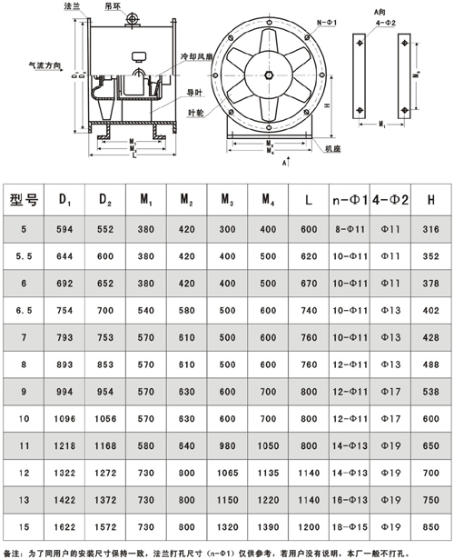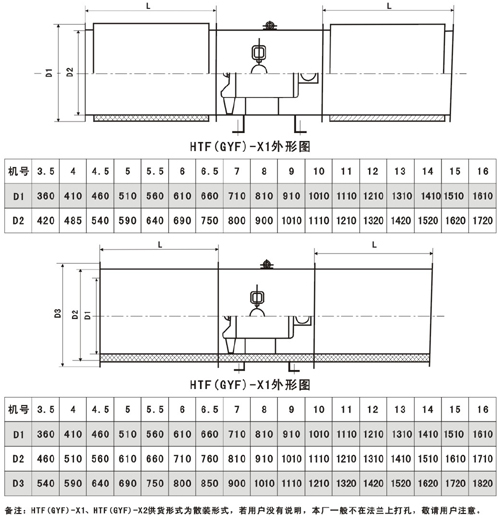 九.HTF(GYF)-D型低速壓消防高溫排煙軸流通風(fēng)機(jī)外形尺寸表