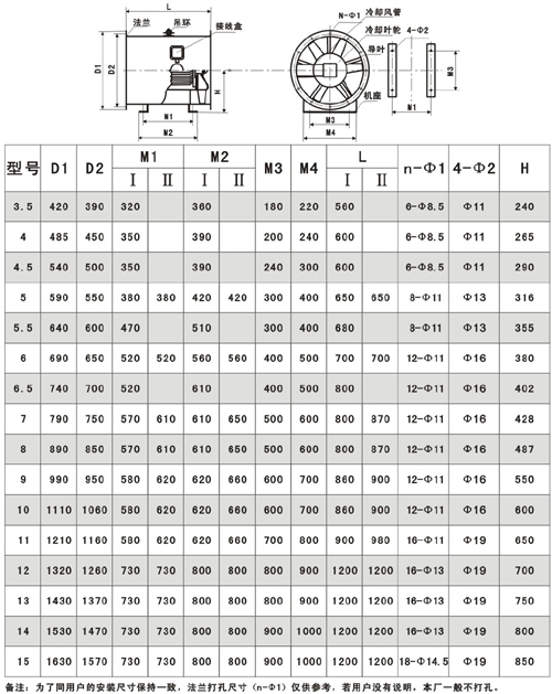 十二. HTF(GYF)-IG(IIG)型混流式消防高溫排煙軸流通風(fēng)機(jī)外形尺寸表