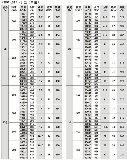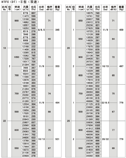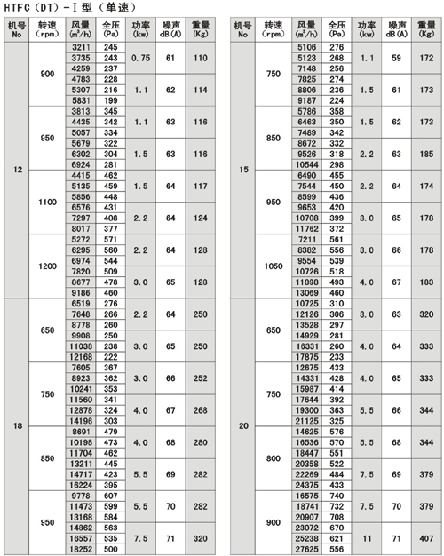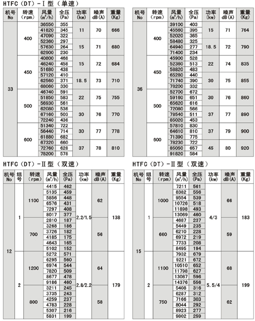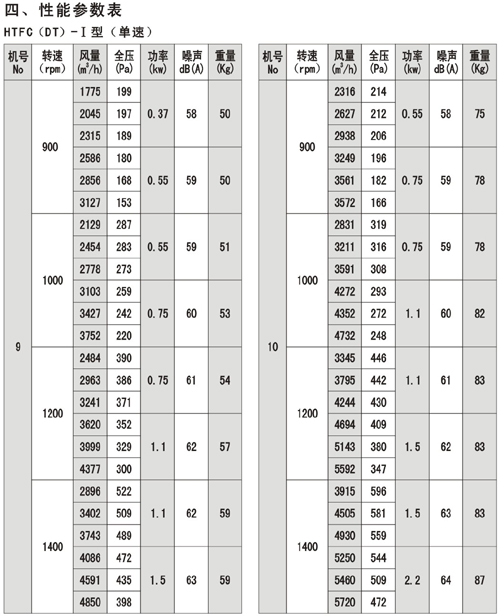 (1).HTFC(DT)系列消防通風(fēng)(兩用)低噪聲式離心風(fēng)機分為I。II。I為單速,II為雙速。該系列風(fēng)機有較多的性能參數(shù),以滿足不同用戶的需要。
