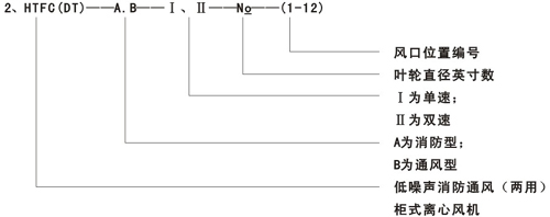 三.、HTFC(DT)系列消防通風(fēng)(兩用)低噪聲柜式離心風(fēng)機型號說明
