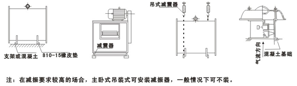 3、風(fēng)機(jī)箱應(yīng)注明風(fēng)機(jī)進(jìn)出口位置,在要求較高的場(chǎng)合,請(qǐng)注明臥式或吊頂式安裝是否帶減振器及減振墊。
