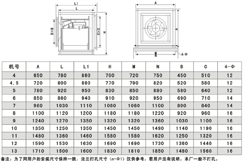 風機選用SWF系列風機,性能參數(shù)依照SWF系列風機中同型號的性能參數(shù)。