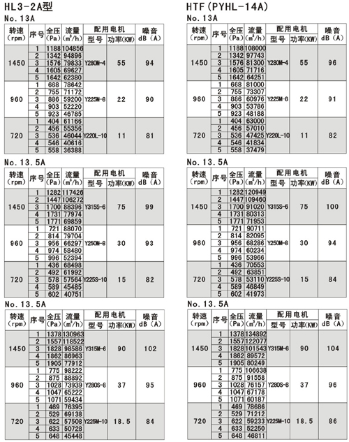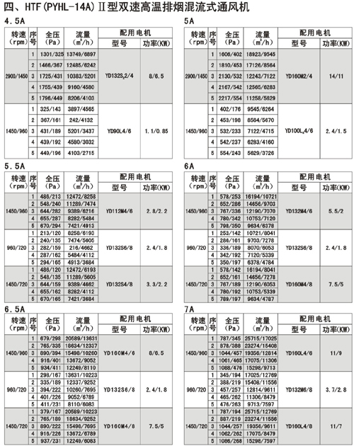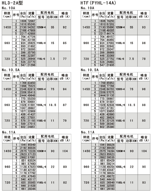 風機的性能在性能表上查閱,表中列出的性能是最高效率范圍內(nèi)的性能,按流量分為五個特點,選用時按性能表為準,出廠的風機合格品性能在額定流量下全壓值不超過+_5%。性能選用表是標準狀態(tài)下的性能,無論技術文件或定貨要求的性能均按標準狀態(tài)為準,標準狀態(tài)大氣壓=101325pa,t=20相對溫度。50%空氣狀態(tài),當實際使用條件下與上述不符合時按有關公式進行換算,風機安裝方式可分為立式和臥式,如立式安裝在訂貨中注明,如流量,壓力安裝尺寸等性能參數(shù)有特殊要求,公司將為您另行設計生產(chǎn)。HTF(PYHL-14A)系列通風機的流量值為300攝氏度高溫空氣流量值,比平常選用HL3-2A系列風機流量值+ _5%。
